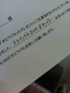 なんだかよくわかんないけどTBSさんから。 ドキドキワクワクしながら来るの待ってたんです。 話ちょっとずれますが、私は秋冬の10~11時が一番好きな時間なんですよ。 何故ならちょうどその時間、お部屋に日光が入るんです。 夏は太陽が高すぎて入らないけど、秋冬で太陽が少し低くなると入るんです。 そこで日向ぼっこするのが大好き。 ポカポカして最高に幸せ。 今日も日向ぼっこしてたら、そのまま寝てしまい気づいたらちょっと日焼けしてたっていう・・・。 せっかく気持ちよかったのに、肌が痒くて仕方ない。 痒みにもがき苦しんでいたら、ピンポーン! はい来ました。 これはなんですか? 開けてみよう! か、空箱!? なんか紙が入ってる。 ス、ストリングス!? じゃーん! ストリングスDVDとタンブラー! どうやら深夜番組でプレゼントー!っていってたのに応募したやつが当ったみたい。 ラッキー!やったね、オヤビン! ただでストリングス見れちゃう。 ただでタンブラー手に入っちゃった。 はい!実はワタクシ、ストリングス見ておりませんでした。爆 映画あんま好きじゃないから見に行かなきゃなーーーーーーーーーーー って思っているうちにいつも終わってしまうのです。 相方っちがもっと近くに住んでたら絶対一緒に見に行くんだけどね。 はい言い訳です。すんまそん。 でもいいの。コレでストリングス見れるから! 見たい人、我が家へおいで。 体は疲れているに頭が興奮してて眠れない。 足がパンパンだから湯船に使ってから寝るとしよう。 ストリングスは気が向いたときに見る! DVDだからいつでもいいのさ。 PR